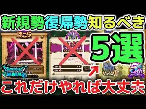 【ドラクエウォーク】新規勢復帰勢初心者さんが知るべき重要なこと5選について!やらなくても攻略に詰まることはないので大丈夫です!※最強武器はエスタークの魔刃、ラーミアの鞭がオススメです【DQウォーク】